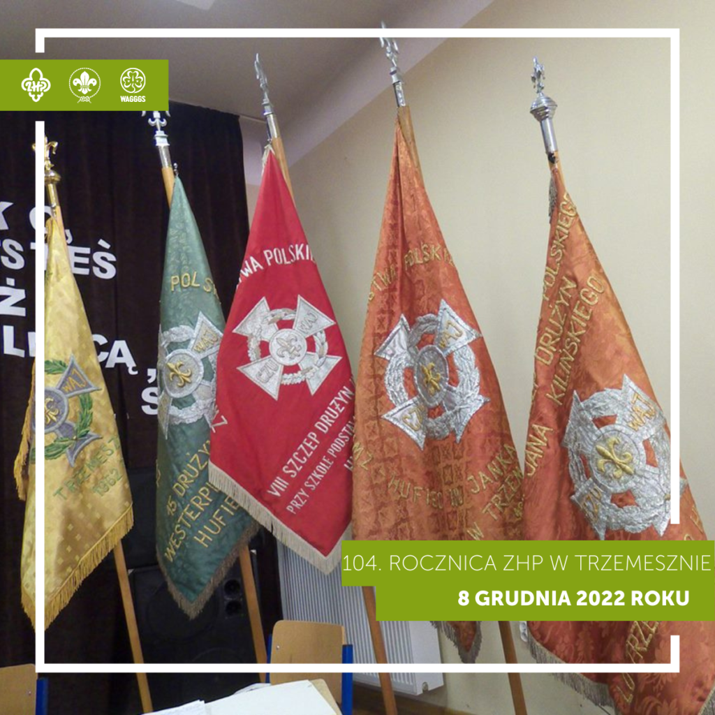 1️⃣0️⃣4️⃣ rocznica przypada właśnie dziś, jednak społeczność Hufca ZHP Trzemeszno spotka się na spotkaniu harcerskich pokoleń pt. ,,SKAUTING w Wielkopolsce 1912-1918″.