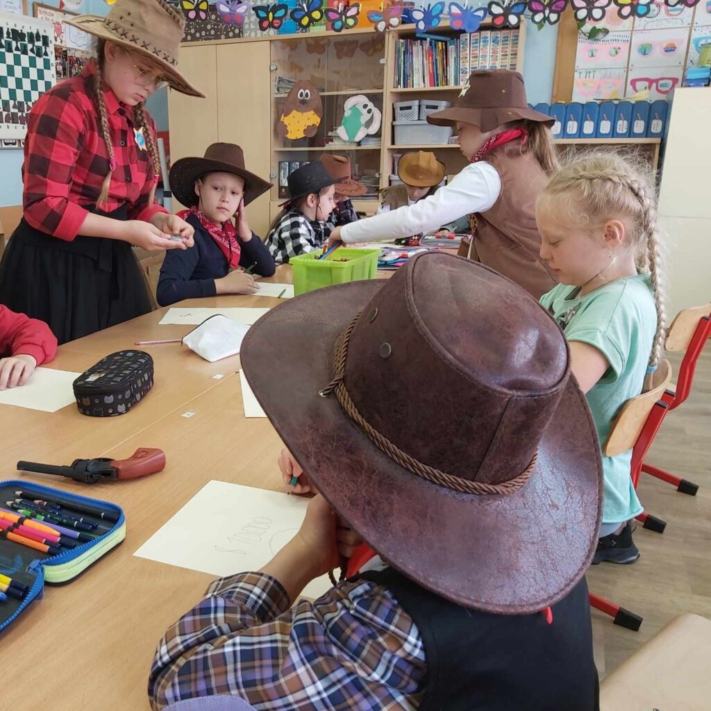 ????Oprócz tego w czasie dwóch dni wspólnej integracji, zuchy przygotowały listy gończe. Osiągnęły sukces, schwytując groźnego bandytę! Nie zapomniały także o śledzeniu śladów rabusiów. A skoro już o nich mowa, dzieci wzięły udział w wyścigach konnych, a także poznały podstawy udzielania pierwszej pomocy. Jak wiadomo, praktyki nigdy za wiele!