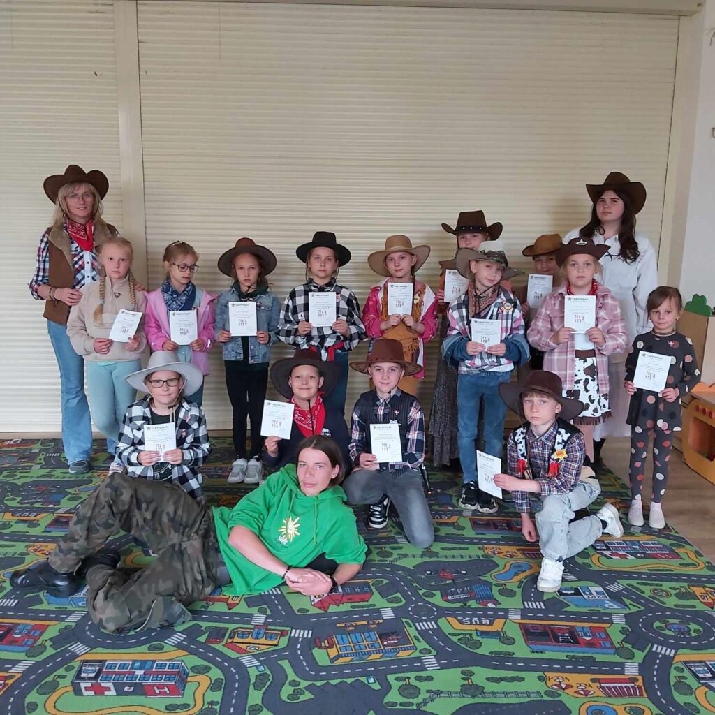 ????Co można robić na Dzikim Zachodzie? Jak się okazuje, na brak nudy nie można narzekać. Zuchy z 6 Gromady Zuchowej ,,Przyjaciele Indian” w dniach 23-24 maja 2025 roku wyruszyły w podróż. Zbudowały samodzielnie miasteczko na prerii. Narysowały mapę terenu. A później… wyruszyły na poszukiwania złota!