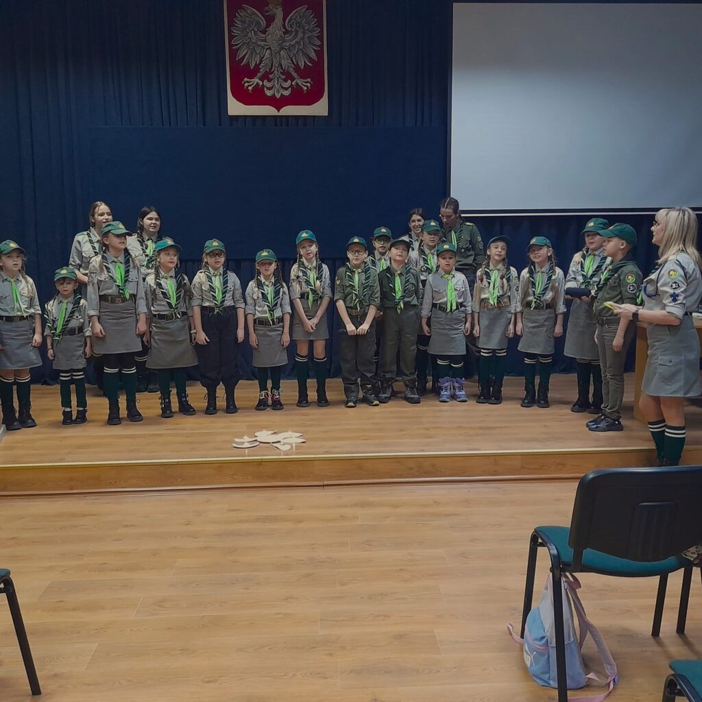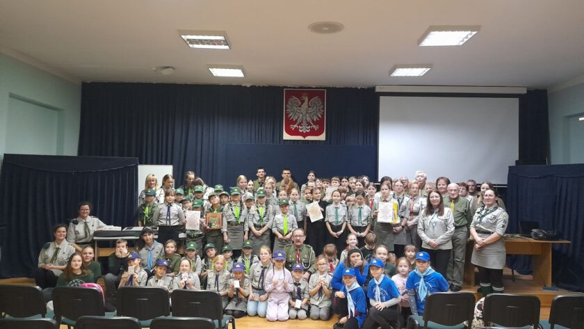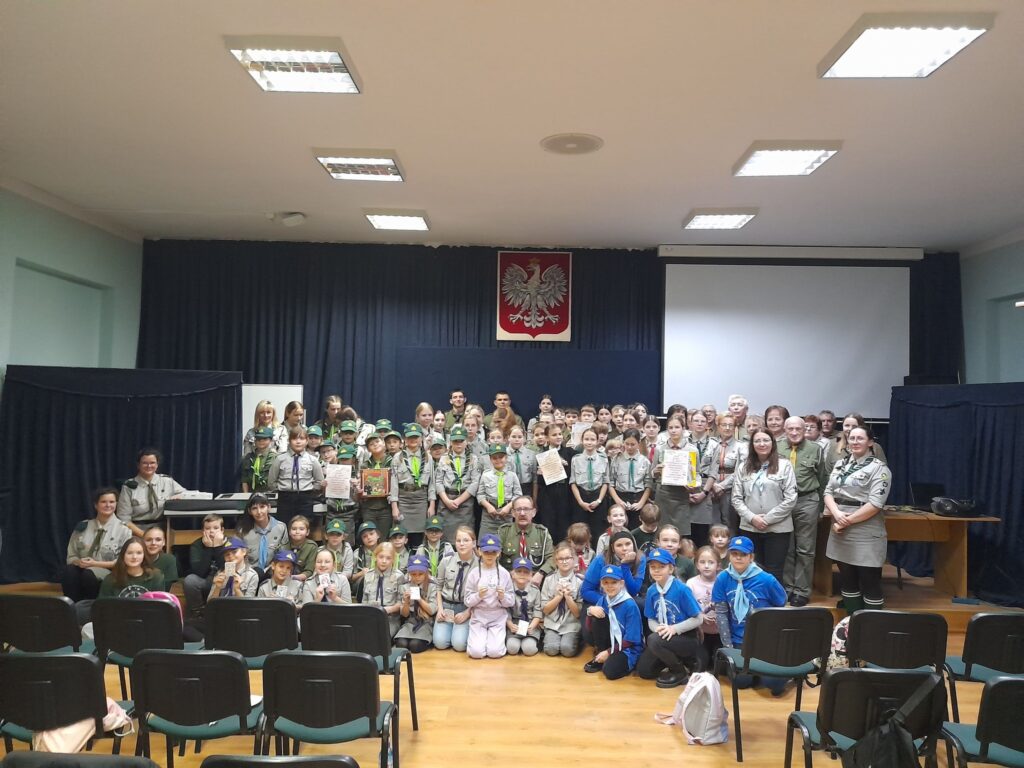 Aula SP nr 1 w Trzemesznie 22 listopada 2024 roku wypełniła się ponad 90 osobami. Odbył się wówczas hufcowy festiwal piosenki „Odkrywamy nieznane… piosenki harcerskie i patriotyczne” wraz z podsumowaniem akcji „Kasztanowy październik”