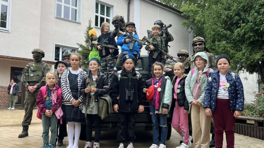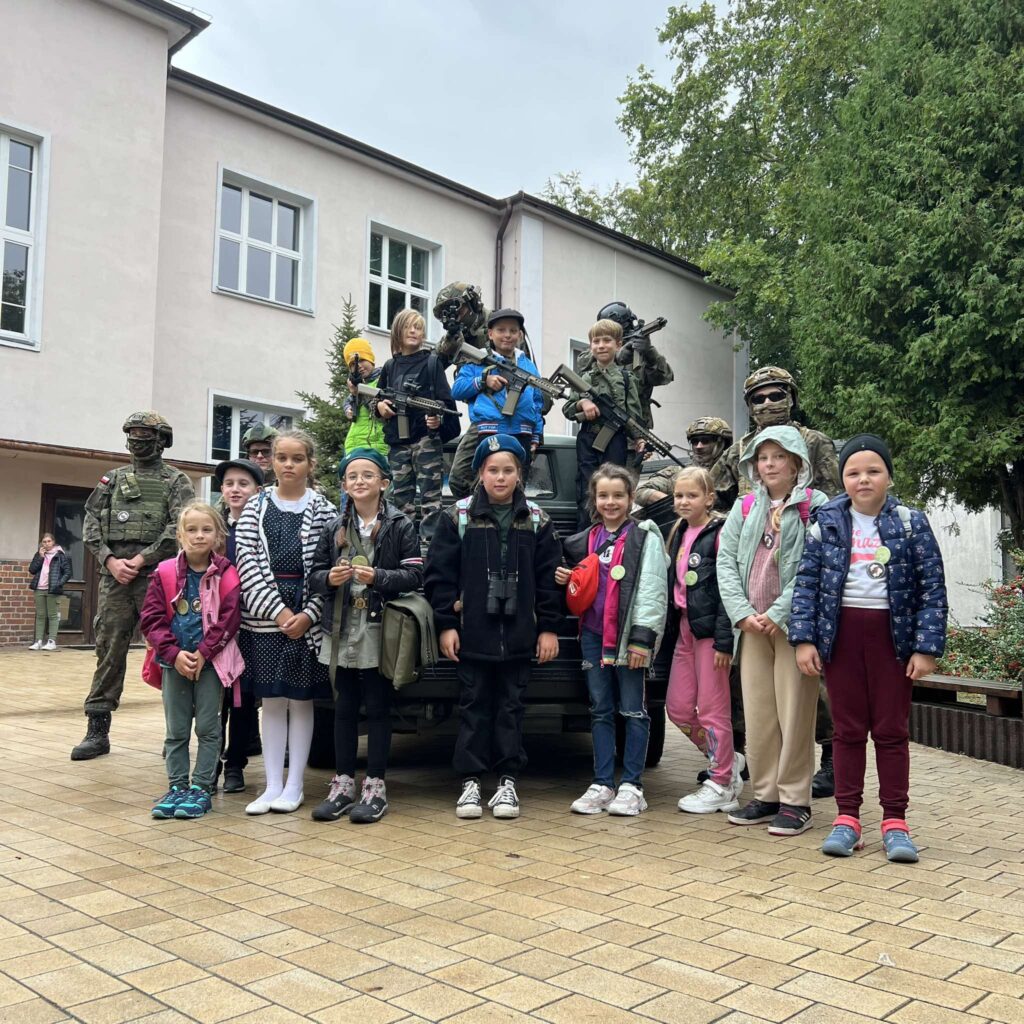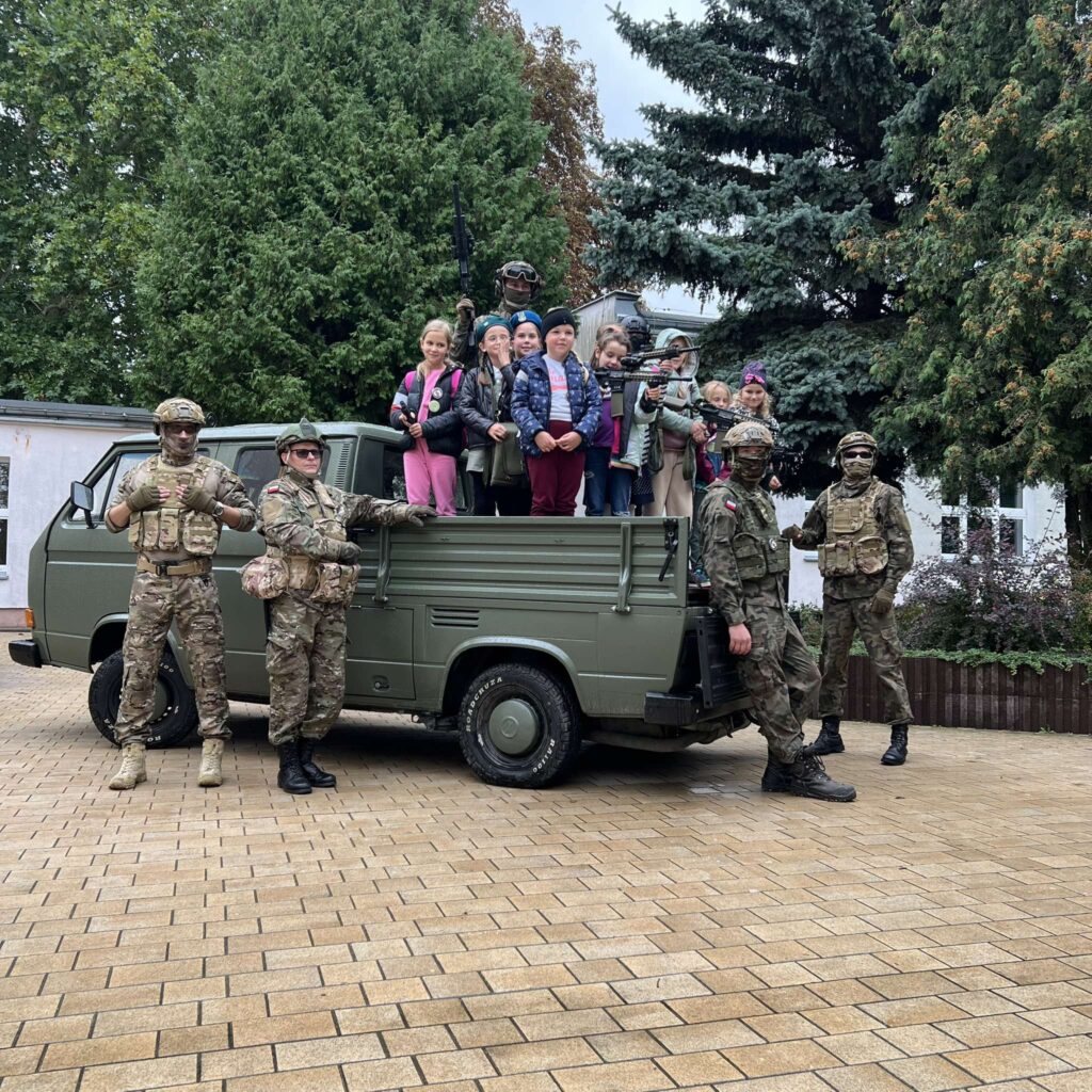 Niespodzianką dla najmłodszych uczestników było spotkanie z członkami grupy ASG Hunters Trzemeszno, którzy zaprezentowali repliki współczesnej broni, umundurowanie oraz wojskowy samochód.
