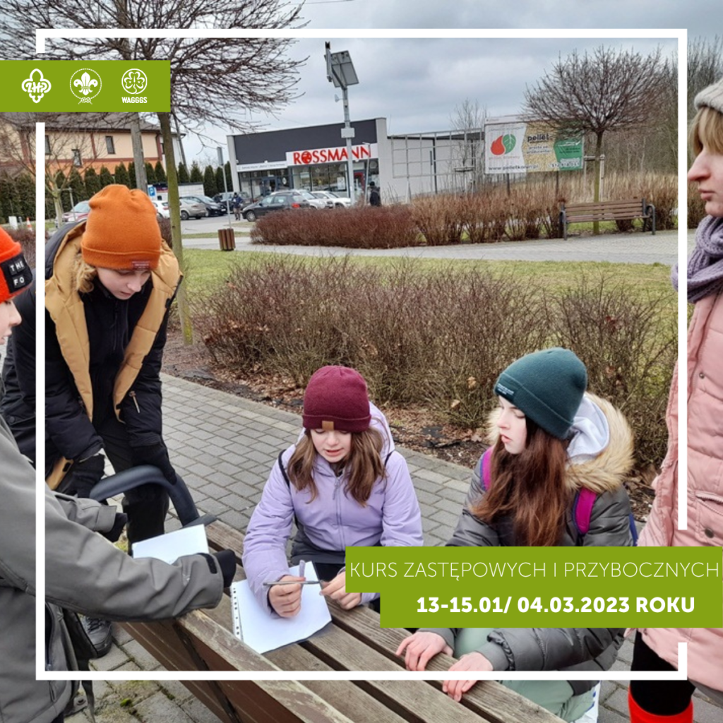 2️⃣ Pierwsza odbyła się w formie biwaku w Zieleniu w dniach 13-15 stycznia 2023 roku. Druga – 4 marca 2023 roku – w formie podsumowującej gry miejskiej po Trzemesznie zakończonej rozdaniem dyplomów uczestnictwa/zakończenia kursu.