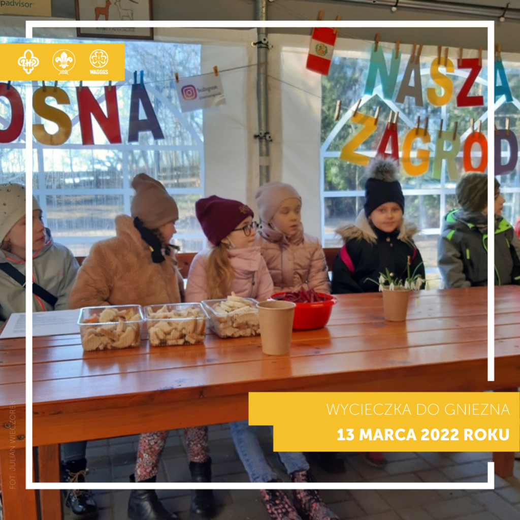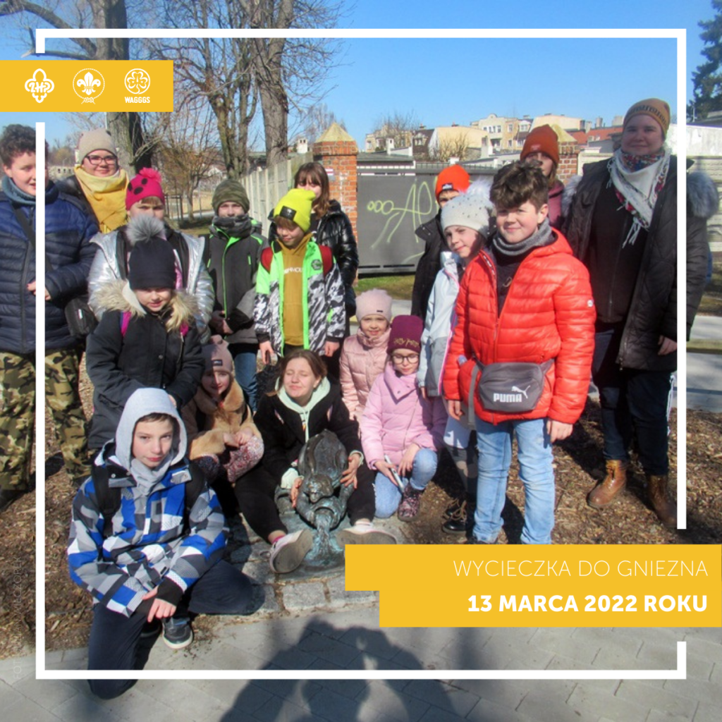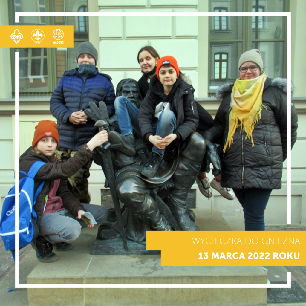 ?? W ramach hufcowej akcji ,,Poznajemy stolice Polski i województw” nie mogliśmy zapomnieć także o Gnieźnie, pierwszej stolicy Polski. W podróż wybrały się zuchy z 7 GZ ,,Zuchy Kruchy” oraz harcerze z 8 DH ,,Odkrywcy” im. Vasco da Gamy.